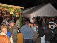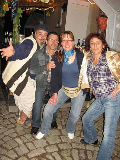 Generation - DJ Jörg - baute seine Anlage auf. Die Zeit wurde mit einer Demonstration des Waidbauern überbrückt, der zeigte, wie aus frischen Waidblättern Farbstoff gewonnen werden konnte. Die Kinder und auch die Erwachsenen waren begeistert bei der Sache und stellten interessiert Fragen über Fragen. Sie rührten mit eigenen Händen die Brühe, die mit Natron versetzt worden war und konnten so beobachten wie sich das Wasser langsam von gelblich in bläulich verfärbte.