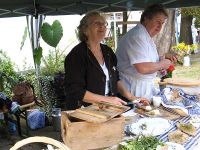 Beim Rundgang über das Festgelände trafen wir auf bekannte Gesichter, wie die Leubinger Frauen oder auch auf die Blaudruckerin Sigrit Weiss mit ihrem Mann.
