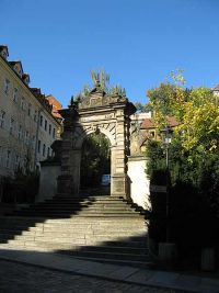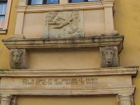 Auch ein altes Apothekergebäude, in der Mitte des 16. Jahrhunderts erbaut, stand am Markt,. Ebenfalls mit einem herrlichen Eingangsportal ausgestattet, machte es auf sich aufmerksam. Das Portal war mit dorischen Säulen und Inschriften von Hippokrates und Cicero verziert. Über dem Portal war ein Relief angebracht, welches den Fall des Ikarus zeigte.
