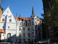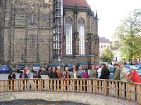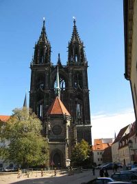 Der Stadtführer beendete seinen Stadtrundgang mit einigen Erklärungen zur neben dem Dom zu sehenden Albrechtsburg. Er erzählte, dass die Albrechtsburg als ältester Schlossbau Deutschlands galt. Sie sollte als Residenzschloss der gemeinsam regierenden Brüder Kurfürst Ernst und Herzog Albrecht errichtet werden. Mit den Bauarbeiten wurde im Jahr 1471 begonnen. Residenz wurde das Schloss jedoch nie, denn diese wurde noch vor der Fertigstellung endgültig in Dresden errichtet. Im Dreißigjährigen Krieg wurde das Schloss stark zerstört und danach restauriert. August der Starke brachte in den ungenutzten Räumen des Schlosses die erste Porzellanmanufaktur Europas unter, die bis 1865 hier verblieb. Heute kann man in der Albrechtsburg Sonderausstellungen sehen und die Gemäldesammlung bewundern. Im Augenblick war eine Ausstellung zu 300 Jahren Meißner Porzellanmanufaktur zu sehen. Wir hatten jedoch nicht die Zeit, uns die Ausstellung anzusehen, denn wir hatten noch einiges vor an diesem Tag.