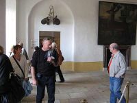 Gleich daneben betrat man das Federzimmer, dessen Schatz mit einer Glasscheibe geschützt war, so dass nur wenige Besucher zusamen hinter die Tür treten konnten. Es war schon beeidruckend, welche Kunstfertigkeit hier gezeigt wurde. August der Sarke hatte 1723 das kostbare Paradebett mit Baldachin und Vorhängen in London erstanden. Nach seiner Rückkehr ließ er die Vorhänge zu Wandteppichen umarbeiten und schuf somit das Federzimmer. Millionen kleiner Federn warden auf einen Untergrund geknüpft worden. Mit ihrer Farbenvielfalt und unterschiedlicher Beschaffenheit wurden einzigartige Federornamente geschaffen.