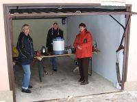Kurz vor dem 4. Advent wurden Stühle und Bänke aus dem Bürgerhaus geholt und so weit es ging mit dem Auto auf den Kirchenberg gefahren. Den Rest der Strecke mussten die zusätzlichen Sitzgelegenheiten getragen werden. Als Standort für den Ausschank der heißen Getränke war ursprünglich ein Zelt geplant. Wir erhielten jedoch das Angebot, eine direkt unterhalb der Kirche befindliche Garage nutzen zu können. In Anbetracht der Schneefülle waren wir darüber dankbar.