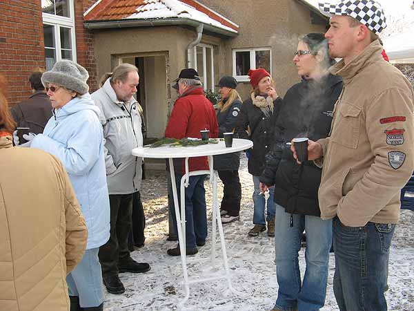 Nach dem Gesang waren alle Kehlen trocken und mussten geölt werden. Zum Glück gab es für die Knirpse heißen Apfelsaft und Tee, während die Erwachsenen mit Glühwein und Grog die Stimmbänder schmierten. Unterdessen wurde der Weihnachtsbaum fertig herausgeputzt, dass er am Abend prächtig glitzerte.