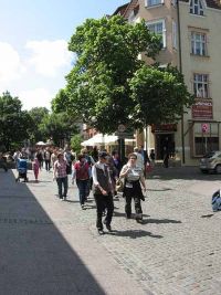 Selbstverständlich mussten einige von uns auch kurz einen Blick ins Innere der Kirche werfen. Anschließend trafen alle wieder vor der Kirche im Sonnenschein zusammen und der Weg hinunter zum Meer konnte fortgesetzt werden. Zahlreiche Menschen waren an diesem Tag unterwegs, denn in Polen war ja der Fronleichnam-Feiertag ein wirklicher Feiertag. Die Gottesdienste waren mittlerweile beendet und somit die Kirchen wieder leer. Die Menschen gingen im Sonnenschein spazieren und vergnügten sich an diesem freien Tag.