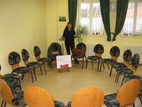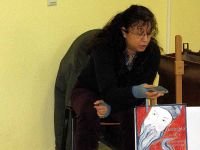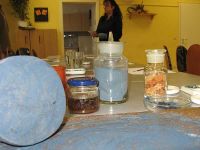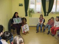 Auch die Form der Veranstaltung war eine etwas andere als sonst. Nicht nur, dass sie an einem Sonnabend stattfand und nicht sonntags, auch die Art und Weise war anders und wich von den vorhergehenden Märchenstunden ab. Am heutigen Tag sollte nämlich nicht nur eine Geschichte erzählt, sondern auch Bilder gemalt werden. Dazu hatten wir Frau Minelli aus Erfurt eingeladen, die nicht nur die Geschichte im "Gepäck" hatte, sondern auch allerlei was dazu gehörte: Bilder, Zeichnungen, Farbpulver, einige geheimnisvolle Zutaten, Papier und Pinsel.