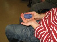 Schnell kam die Sprache auf Waid und die Kleinen Zuhörer erfuhren so einige Dinge über die Pflanze und über das, was Rosanna Minelli in so mancher kleinen Schachtel oder Truhe mitgebracht hatte. Sie stellten Fragen und erhielten Antworten. Es gab aber auch Fragen, die die Geschichtenerzählerin stellte und von den jungen Zuhörern beantwortet wurden.