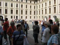 Nachdem wir das Matthiastor durchschritten hatten, öffnete sich vor uns ein Platz, der ringsum von Barock- und Renaissancebauten begrenzt wurde. Wir befanden uns im Hof des Palastes, der als zweiter Burghof bezeichnet wurde. Da wir nicht über den Hauptzugang in das Burggelände gekommen waren, starteten wir also hier mit unserer Besichtigungstour auf dem Hradschin. Wir hielten uns hier jedoch nicht lange auf, zumal wir später noch einmal hierher kommen sollten, wie Denise verkündete.