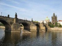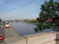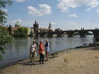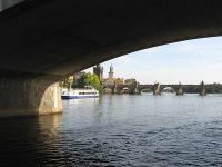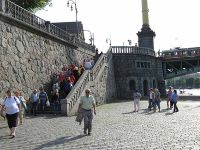 Nicht weit entfernt von einer der zahlreichen Geschäfte und Gaststätten, konnte man bis an das Ufer der Moldau gehen. Von dieser Stelle aus konnte man genau auf die Karlsbrücke blicken und hatte damit eine ganz andere Ansicht von diesem Bauwerk. Es dauerte aber nicht lange, und wir mussten uns zu unserem Treffpunkt - einer Straßenbahnhaltestelle - auf den Weg machen.