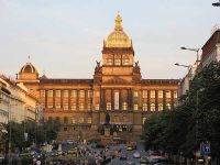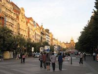 Der Weg in die Innenstadt war nicht allzu weit und nach kurzer Zeit war der Altstädter Ring erreicht. Von dort gingen wir weiter zum Wenzelsplatz, den wir am Vortag schon zweimal aufgesucht hatten. Wir erreichten ihn gerade, als die Sonne das am anderen Ende stehende Nationalmuseum ins rechte Licht setzte. Der Platz war unter Karl IV. als Rossmarkt angelegt worden. Seinen heutigen Namen erhielt er erst 1848. Der Platz ist insgesamt 750 Meter lang und 60 Meter breit. Vor dem Südost-Ende steht das Wenzelsdenkmal aus den Jahren 1912/13. Wir hatten vor, den Platz einmal zu umrunden und machten uns darum auf den Weg hinauf in Richtung Nationalmuseum.