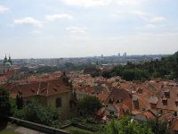 Links war das Dächermeer von Prag zu sehen, geradeaus wehte die deutsche Fahne über der Prager Botschaft, die durch die Ereignisse vom Sommer 1989 auf der ganzen Welt bekannt wurde und rechts erhob sich auf einer Anhöhe das Kloster Strahov.