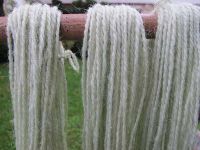 Die Wollestränge, die an diesem Tag gefärbt wurden sollten als Exponate in das Heimat- und Waidmuseum einziehen. Deshalb wurden auch verschiedene Methoden ausprobiert, um zu einer möglichst großen Farbpalette zu gelangen. Beim Versuch mit einer Kaltfärbung ohne chemische Zusätze wurden drei Stränge Schafwolle verwendet.