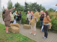 Nachdem wir uns verabschiedet hatten, machten wir uns auf den Rückweg zu unseren autos, die am Rande des Ortes geparkt waren. Mit Strohbündeln und Getreidegebinden beladen zogen wir durch Rohrborn. Unterwegs legten wir eine Pause ein, um zu verschnaufen.