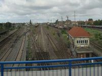 Wir kamen an riesigen Treibstofftanks vorbei und fuhren auf einer Brücke über die Gleise des zu DDR-Zeiten größten Güterbahnhof des Landes.