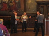 Anschließend trat noch einmal das Quartett "Fracksausen" auf, bevor es zum Buffet mit Häppchen aller Art und einem Glas Sekt oder Saft ging. Dort konnte man sich mit anderen Teilnehmern des Blumenschmuckwettbewerbs unterhalten oder auch mit den Musikern ein paar Worte wechseln. Der Wettbewerb fand damit seinen diesjährigen Abschluss.
