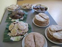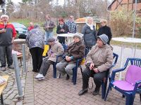 Im Bürgerhaus war unterdessen der Brotschmier-Marathon zum Ende gekommen und zusammen mit den Pfeffertafeln für den Verzehr angerichtet worden.Nach und nach waren auch weitere Hochstedter eingetroffen, die sich wunderten, dass die Baum-Aufstellarbeiten schon so weit gediehen waren. Jetzt gingen wir nämlich schon dazu über, die Kugeln aufzuhängen und damit die Arbeiten am Baum fast gänzlich abzuschließen.