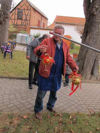 Nachdem die Knirpse und Erwachsenen den musikalischen Teil abgeschlossen hatten, gab es noch einen kurzen offiziellen Teil, bei welchem Karola Stang (MdL) einen Scheck mit Fördergeldern an den Vorsitzenden des Heimatvereins, Jens Schüßler, übergab, um damit Projekte zu unterstützen, die der Verein im Heimat- und Waidmuseum verwirklichen wollte. Die Mittel stammten vom Verein "Alternative 54 Erfurt e.V."