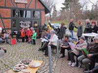 Kurze Zeit später begann das Programm mit Musik zur Adventszeit, in die auch die Erwachsenen gern einstimmten. Diesmal waren sogar Liedertexte verteilt worden, um die erwachsenen Sänger vor vergessenen Textpassagen zu schützen.