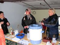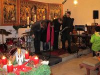 Noch vor der vereinbarten Zeit - 13.00 Uhr - trafen die Musiker ein. Dann galt es, die Instrumente und Hilfsmittel für das Konzert, wie Lautsprecher usw. die Kirchentreppen hinauf zu wuchten, was eine ganz schöne Schlepperei bedeutete. Als schließlich alles im Kircheninneren abgestellt war, wartete der Glühweintopf mit einer Stärkung auf uns.