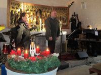 Jazzig-swingende, musikalische Leckerbissen, die jeder kennt, vorgetragen von Sylvia Weisheit-Heinze begeisterten das Publikum, welches bei Jingle Bells und anderen in den Gesang einstimmte. Ruhig wurde es bei einem Lied, das seine Wurzeln im Eichsfeld hatte: Maria durch ein' Dornwald ging.