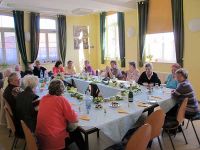 Sogar die Sonne spielte mit und schickte Frühlingsstrahlen durch die hohen Fenster des Bürgerhauses, wo sich die Frauen eingefunden hatten um ihren Ostertreff abzuhalten. Gemütlich erzählte man sich bei Kaffee und Kuchen, was es Neues in Hochstedt gab.