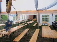 | Zeltdekoration und einräumen der Tische und Bänke | |