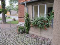 Also ging es am Freitag weiter. Dachrinnen und andere begrünbare Stellen, wie die Theke, wurden verziert und geschmückt. Außerdem war diesmal ein kurzes Vordach über der Theke anzubringen. Dem Wetterbericht war nicht ganz zu trauen, denn es war vor örtlichen Schauern die Rede.
