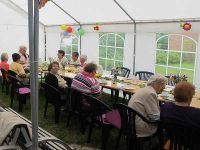 Der 89. Frauentreff war eigentlich kein außergewöhnlicher Treff. Er war nur besonders, weil er zum ersten Mal in diesem Jahr draußen, im Hof des Bürgerhauses stattfinden konnte. Dies war dem Umstand zu verdanken, dass die Zelte des Vereins noch dort standen. Am Wochenende hatten diese die Bewohner der Straße am Bürgerhaus für ihr Straßenfest gemietet und dann dort aufgebaut stehen gelassen, da der Verein nach dem Frauentreff darin ein kleines Sommerfest feiern wollte.