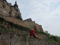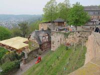 Diese Zeit stand uns aber nicht zur Verfügung. Wir sahen uns daher das Schloss nur von außen an und genossen die Aussicht auf das Tal der Lahn und Marburg. Hier endete unsere Führung und die Stadtführerin verabschiedete sich von uns. Einige der Reisegruppe hatten sich wegen des Anstiegs schon vorher aus der Führung verabschiedet und entdeckten die Stadt auf eigene Faust. Diejenigen, die bis zum Schloss mitgekommen waren machten sich jetzt an den Abstieg, um etwas zu essen oder die Stadt weiter zu besichtigen. Wir hatten uns für 15.00 Uhr wieder am Bus verabredet und damit konnte jeder fast drei Stunden nutzen für den individuellen Stadtbummel.