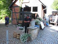 Als endgültigen Drehtag in Hochstedt war der 22. Juli vorgesehen. Das dieser Tag zu einem der heißesten des Jahres werden sollte war da noch nicht abzusehen gewesen. Wir hofften, dass mit dem Färben alles klappen würde, wir hatten neue Chemie dafür bekommen und uns ein anderes Verfahren zur Indigo-Gewinnung ausgesucht. Es ähnelt dem, womit wir Indigopulver gewannen, sollte also zum Färben auch nutzbar sein.