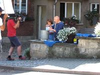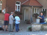 Am geplanten Drehtag kamen die MDR-Leute und packten zunächst ihre Gerätschaften aus. Dann ging es aber auch schon los, denn das Sonnenlicht in seinem Lauf kam immer mehr auf die Podeste vor dem Museum zu und das gefiel dem Kameramann überhaupt nicht.