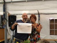 Zum Konzertbeginn von Regiona Ross war auch die Thüringer Landtagsabgeordnete Karola Stange eingetroffen, die uns einen Scheck der Alternative 54 e.V. in Höhe von 400 Euro überreichte. Der Verein der Fraktion der Linken im Landtag unterstützte damit wieder einmal eines unserer Projekte, nämlich dieses Waidfest und damit zugleich die 909-Jahrfeier. Der Verein, dessen Mitglieder - die Landtagsabgeordneten - Teile Ihrer Diätenerhöhung in gemeinnützige Projekte investieren hatten uns bereits in den vergangenen Jahren unter die Arme gegriffen.