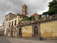 Von hier ging es durch schmale, hohe Häuserschluchten in südlicher Richtung weiter, vorbei an traditionell eingerichteten Gewürz- und Lebensmittelgeschäften, die hier noch aus Säcken die Waren verkauften. Wir besichtigten die offenen Arkadenhallen eines prächtig mit Fresken verzierten Palazzo und gelangten wenig später an eine weitere alte Kirche, die aus den Grundmauern eines alten Theaters bestand und dann später Bestandteil der Stadtmauer wurde.