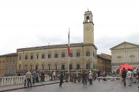 Hier war keine Rede mehr von Mittelalterlicher Architektur, vielmehr überwogen neuere Bauten. Bis hin zur Altstadt war es noch ein weiter Weg, den wir in unserem kurzen Zeitrahmen nicht schaffen würden. Wir erreichten den Arno und trafen auf einer Brücke auf ein Militärmusikkorps, welches gerade die italienische Nationalhymne spielte – zur Freude der Touristen.