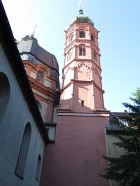 Von hier setzten wir unseren Weg in Richtung Mainufer fort. Frau Volmer wies noch einmal darauf hin, dass die Stadt zu 90 % in einem Bombardement zerstört worden und der größte Teil der Bevölkerung obdachlos geworden war. Der Aufbau war damit besonders eilig und man konnte sich daher nicht so sehr an alte Bebauungspläne halten und auch nicht an die Rekonstruktion der Häuser, so wie sie einmal ausgesehen hatten. Dadurch wirkt die Innenstadt Würzburgs durch die wiederaufgebauten Kirchenbauten einerseits alt, auf der anderen Seite aber durch dazwischen gepresste, neuere Bauten mit ihren nüchternen Fassaden wie ein zusammengewürfeltes Mosaik aller Stilepochen.