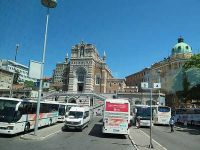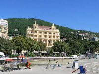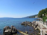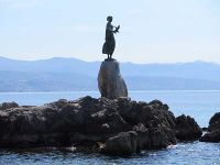 Gegen 9.00 Uhr hatten wir das Učka-Gebirge erreicht und durchfuhren den mehr als 5.000 Meter langen, gleichnamigen Tunnel, um das Gebirge zu passieren. Opatija liegt am Meer, am Fuße der Berge des Učka-Gebirges und wurde ab der zweiten Hälfte des 19. Jahrhunderts zum Kurort ausgebaut. Der Mondäne Badeort präsentiert sich mit Uferpromenade und vielen Hotels aus der Zeit des Historismus. Reiche Ornamente an den Fassaden konnte man schon nach der Einfahrt in den Ort sehen. Um 9.35 Uhr erreichten wir in der Nähe der Uferpromenade unseren Busparkplatz. Rings um uns herum standen Hotels, deren die Nähe zur Donaumonarchie anzusehen war. Jugendstilhäuser mit verspielten Reliefs gab es ähnlich viele wie in Nizza. Überhaupt ähnelte der Ort der südfranzösischen Stadt. Nur, dass Opatija kleiner war.