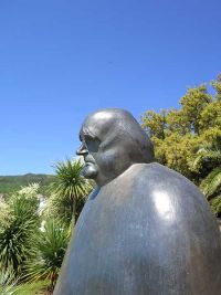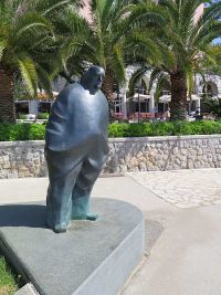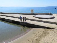 Zu Fuß folgten wir der Promenade zunächst in westlicher Richtung und nach dem Besuch einiger Souvenirgeschäfte, schlugen wir die andere Richtung ein. Dort sah man auf den Felsen vor der Bucht das Wahrzeichen der Stadt. Dabei handelt es um "das Mädchen mit der Möwe", deren Statue auf das Meer hinaus blickt. Am betonierten Badestrand räkelten sich schon die ersten Sonnenhungrigen. Das Wasser war klar, aber zum Baden wahrscheinlich zu kalt, zumindest zu reich an Seeigeln. Wir folgten der Promenade noch ein Stuck und schossen einige Fotos.
