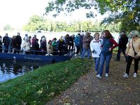 Den Parkplatz am Park erreichten wir eine Dreiviertelstunde nach unserer Abfahrt in Wittenberg. Leider mussten wir eine Umleitung fahren und waren daher recht knapp vor Ort. Treffpunkt für unser Programm hier war die Gondelstation. Wir wollten zuerst vom Wasser aus die Gartenlandschaft erkunden. Als Treffzeit war 14.00 Uhr festgelegt worden. Vom Parkplatz aus verfehlten wir jedoch den richtigen Weg und gelangten am falschen Seeufer Ufer auf die Höhe der Gondelstation. Zwischen uns und dem Treffpunkt lag der See, die Roseninsel, der See, die Landzunge einer Halbinsel und wieder der See. Es blieb uns nichts anderes übrig als dreimal mit der Fähre überzusetzen, zuerst zur Roseninsel, dann von hier zur Landzunge und nach deren Überquerung hinüber zum anderen Ufer des Sees. Das Abenteuer hatte begonnen und selbstverständlich waren wir zu spät.