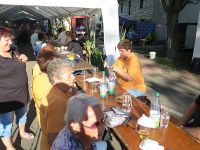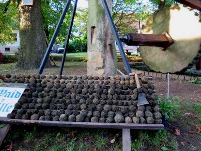 Am 29. August 2015 feierte die Rohrborner Dorfgemeinschaft zusammen mit Gästen aus dem nahen Sömmerda und anderen Orten aus der Umgegend das zehnte Rohrborner Waidmühlenfest. Fast immer liegt das Fest eine Woche vor unserem Waidfest, so dass wir auch in diesem Jahr Zeit hatten uns gegenseitig zu besuchen. Das Wetter war diesmal mehr als ausgezeichnet (sonst hat es meistens etwas Nasses von oben gegeben), vielleicht ein bisschen zu heiß. Die Stimmung war ebenfalls heiß in Rohrborn. Viele Besucher hatten den Weg in den kleinen Ort bei Sömmerda gefunden, um zu sehen wie vor ihren Augen das gewaltige Mühlrad der Waidmühle die Waidblätter zerquetscht, angetrieben von einem Pferd. Das Rumpeln der steinernen Zähne des Rades schickte - übertragen vom Boden - den in der Nähe stehenden Zuschauern Gänsehaut über den Körper.