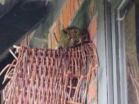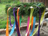 Auch die Dekoration war schon verarbeitet und verteilt, die bis in den letzten Schuh durchgezogen wurde. Der Renner waren allerdings aus alten Pullis hergestellte Sitzauflagen für die Biertischgarnituren, die unsere Monika in wahrer Fleißarbeit hergestellt hatte. Allerdings konnten wir wieder feststellen, dass wieder ein Vogel auf dem Maibaum sein Domizil errichtet hatte. Das Nest war jedoch leer. Wir pflanzten es wieder auf den Flechtkorb um, wie schon im vergangenen Jahr.