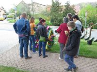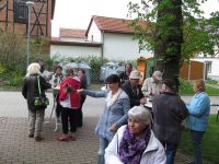 Wieder einen Tag darauf war es dann soweit, dass der Maibaum aufgestellt werden konnte. Wie immer hatten wir die Werbetrommel gerührt und die Hochstedter noch einmal darauf hingewiesen. Das Wetter machte aber kaum Anstalten sich wesentlich bessern zu wollen. Trotz Sonnenschein blieb es eben kühl und frisch. Mutig wie wir waren, hatten wir trotz eingerichtetem Bürgerhaus zwei unserer Falt-Pavillons vor dem Museum aufgestellt. Das ging schnell und wenn es doch regnen sollte, war wenigstens ein bisschen Schutz von oben vorhanden.