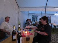Die Vorbereitungen gingen am Tag selbst weiter. Die Zelte wurden eingeräumt und die Deko angebracht.Auch der Rost musste angefeuert werden, damit pünktlich um 19.00 Uhr der Vortrag beginnen konnte.