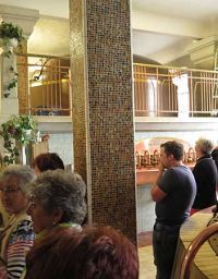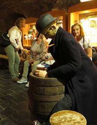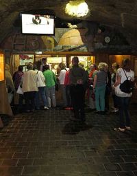 Im Anschluss an die Führung gab es noch die Möglichkeit Bier einzukaufen. Dazu musste man in den Berg neben der Brauerei eintauchen. Ein Stollen führte zu einem Restaurant der Brauerei und dem angegliederten Laden. Im Stollen waren dorthin etwa 50 Meter zurückzulegen.