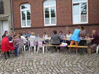Die 147. Vereinssitzung am 12. Juli 2016 war eigentlich eine ganz gewöhnliche Sitzung, die jedoch wegen des schönen Wetters im Hof des Bürgerhauses stattfinden konnte. Kurzerhand waren Tische und Bänke aufgestellt worden, wie auch Getränke und sogar Obst. Bei diesem handelte es sich um Stachelbeeren aus eigener Ernte, denn die waren zwischen den Weinreben am Schauweinberg gegenüber des Museums gereift. Wie sonst im Oktober zur Weinlese, gab es diesmal also die süßen Stachelbeeren zum Probieren.