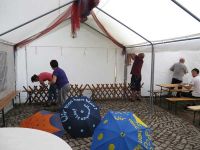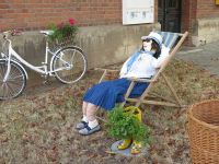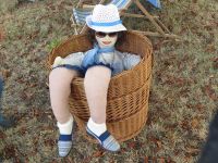 Ein Tag Pause für die Vorbereitung war am Mittwoch vorgesehen, was sich als ganz günstig herausstellte, denn an diesem Abend spielte die Deutsche Fußball-Nationalmannschaft. Somit ging es am 1. September weiter im Programm. Diesmal kam unsere "Waid-Elli" ins Spiel, denn sie war seit letztem Waidfest neu gefüllt und eingekleidet worden. Elli war schon zur 900-Jahrfeier im Einsatz und hatte seither auch ein paar Waidfeste miterlebt. Diesmal sollte sie sich dafür in einem Liegestuhl räkeln können und mit Sonnenbrille auf der Nase das schöne Waidfestwetter und die Gäste erwarten. Eine Liegeprobe sollte heute erfolgen.