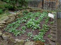 Am Vortag zum Waidfest galt es wichtige Dinge zu erledigen. Ein Präsent war vorbereitet worden für Herrn Friebel, dem Geschäftsfüher der Landgut Kornhochheim GmbH. Das Präsent in Form von unserem Waidschnaps war als Dankeschön gedacht für die Belieferung mit frischen Waidblättern. Die Landgut Kornhochheim GmbH bestellt Ackerflächen mit Waid für die Industrie und war bereit, uns mit Waidblättern auszuhelfen, da unser Beet allzu dürftig aussah. Es war in der Vergangenheit einfach zu trocken gewesen. Da wir das Beet nicht gänzlich abernten wollten, mussten wir also Waid zum Färben "importieren".