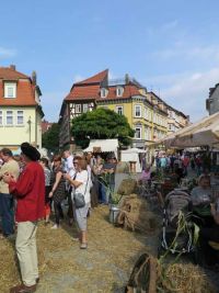 Um das Wochenende zu komplettieren (am Vortag waren wir in Neckeroda und in Rohrborn) fuhren wir am Sonntag, dem 27. August 2017 nach Bad Langensalza zum Mittelalter-Stadtfest. Da Langensalza eine der großen Waidhandelsstädte im Mittelalter war, hatten wir auch einen Bezug zum Thema. Nicht zuletzt, weil die Stadtführergilde bei uns im Museum schon einmal zu Besuch war, um sich zum Thema Waid fortzubilden. Das Wetter war wie geschaffen für das Stadtfest und wir besuchten die mittelalterlichen Gassen und Straßen der Altstadt.