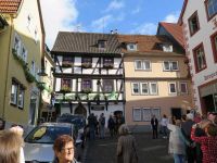 Nach dem Besuch des Schlosses rückten wir weiter in die Altstadt vor, es ging vorbei an alten Fachwerkhäusern, wie einer Bäckerei im Familienbesitz aus dem 16. Jh (1548). Nach gut zwei Stunden verabschiedeten wir uns an der Stadtkirche mit Beifall von der Stadtführerin.
