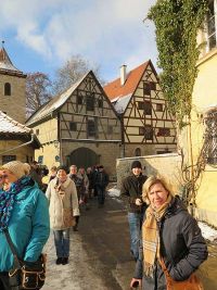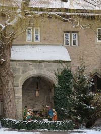 Nach wenigen Schritten ging es wieder bergan und wir kamen an einem ehemaligen Klostergebäude vorüber, in dessen Hof eine Weihnachtskrippe aufgebaut war. Die Stadtführerin erzählte, dass hier die Familie Wohlfahrt ihre Wohnung hätte. Nur wenig später erreichten wir das Weihnachtsmuseum von Käthe Wohlfahrt, unser nächstes Ziel.