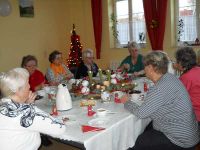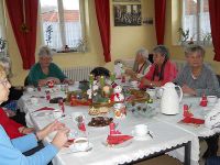 Auch 2017 gab es eine Weihnachtsfeier im Frauentreff. Die Frauen hatten sich wie immer an einem Dienstag verabredet. Diesmal war es der 12. Dezember 2017, der zur Weihnachtsfeier genutzt werden sollte. Ab 15.00 Uhr zog wieder herrlicher Plätzchenduft durch das Bürgerhaus und auf dem Tisch glitzerte es und kleine Fläschchen standen bereit, deren Inhalt durch weihnachtliche Dekoration geschickt verborgen blieb.