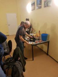 Einige Salate waren mitgebracht worden und zu Beginn des Neujahrsessens erst einmal der Bürgerhausraum eingeräumt. Wir wollten so spontan und locker wie möglich feiern.